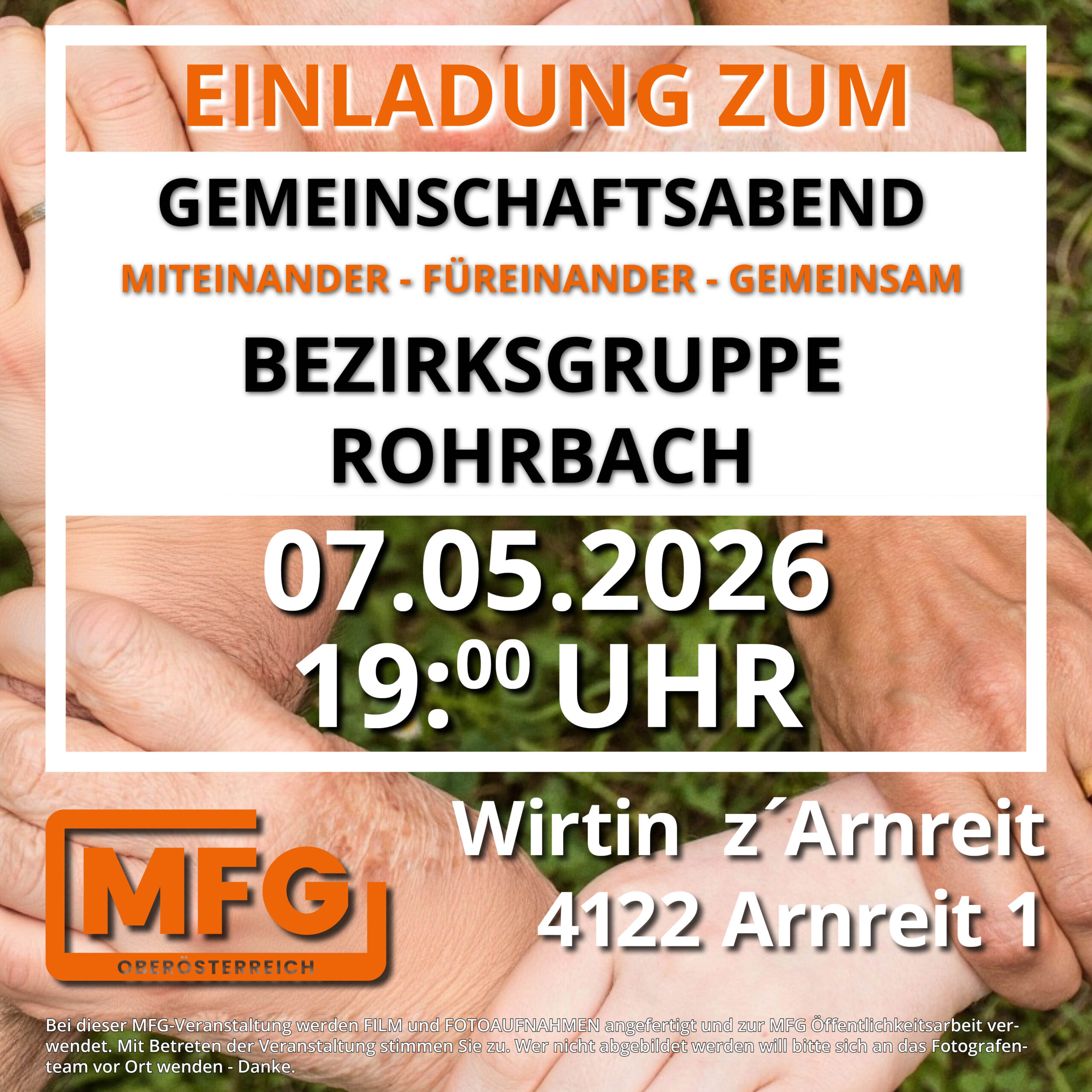 EINLADUNG GEMEINSCHAFTSABEND MFG BEZIRK ROHRBACH