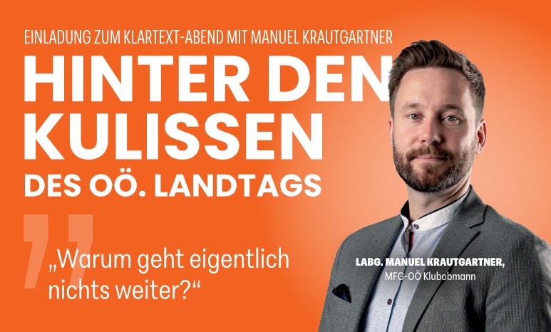 An diesem Abend gibt Labg. Manuel Krautgartner, Klubobmann der MFG Oberösterreich, einen offenen Einblick in die tatsächlichen Abläufe im Landtag – jenseits von Schlagzeilen und Polit-Floskeln.