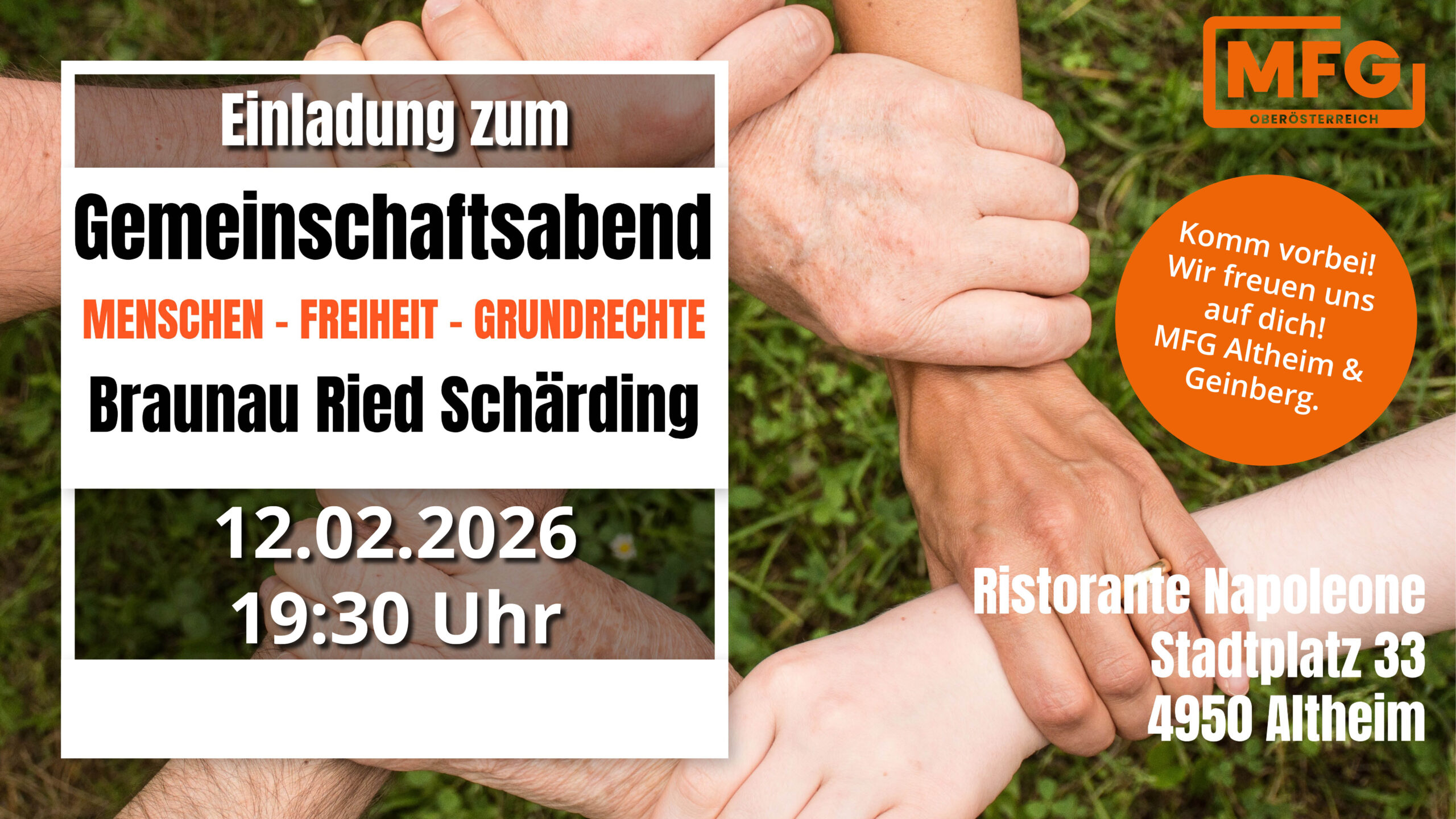 Wir laden euch herzlich zu unserem nächsten Informations- und Gemeinschaftsabend in Altheim ein.